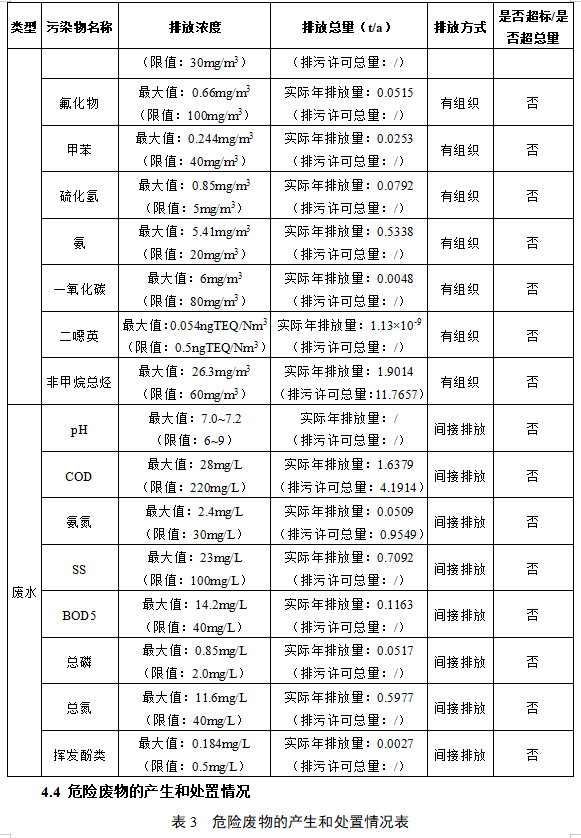 的名称、浓度和数量,危险废物的产生和处置情况,依法落实环境风险防控措施情况等。